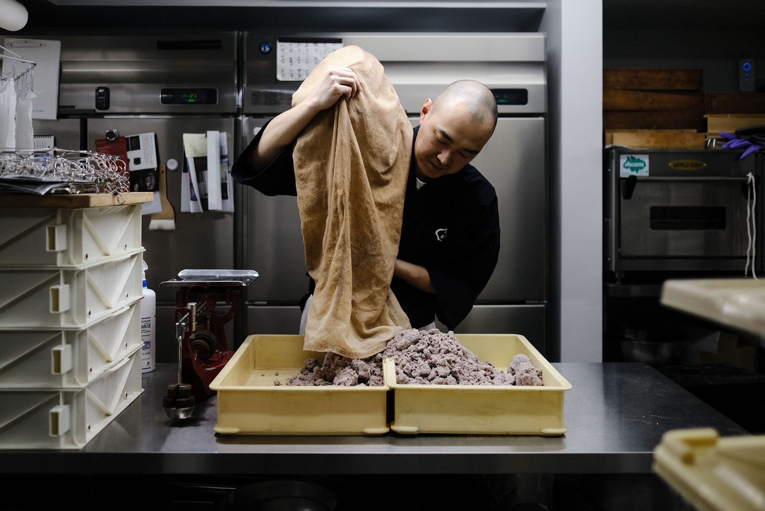 "漉しこ"と、お砂糖の中でも雑味の少ない鬼ザラ糖と合わせて練りあげることで、小豆の風味を引き出した喉ごしの良い漉し餡が出来上がる。